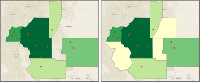 • Variance—The variance of weighted values in each field. The weight applied is the proportion of the summary layer within the polygons.